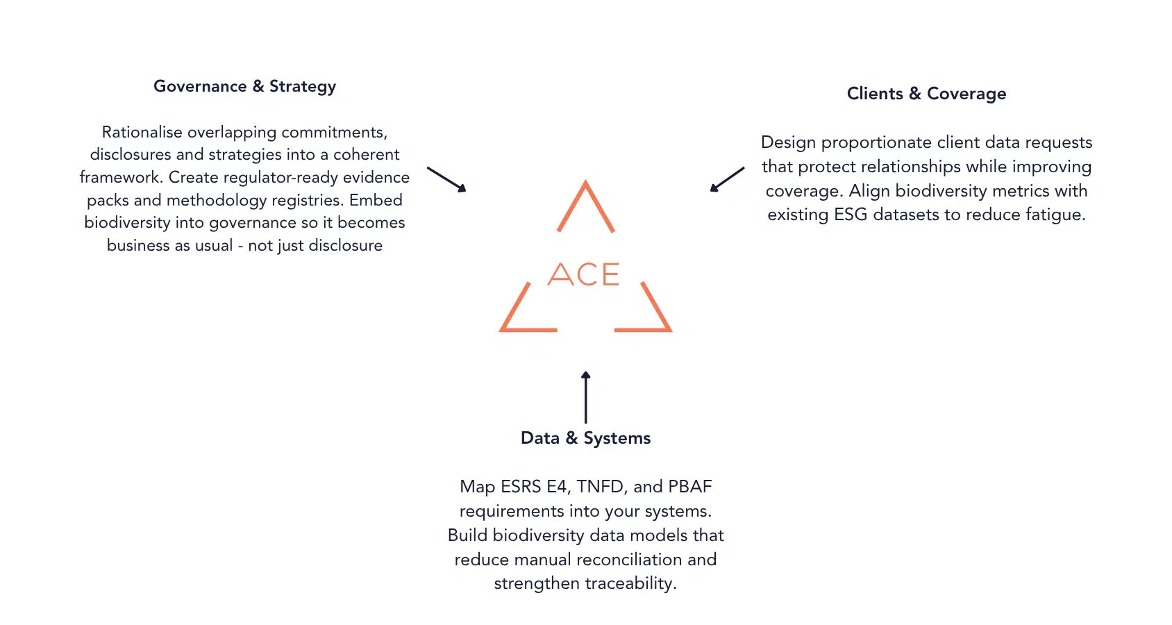 The result? Public commitments risk outpacing operational readiness. Without clear metrics and data governance, firms face reputational gaps, slower product innovation, and vulnerability when regulation such as ESRS E4 under CSRD tightens. Yet the same systems that made climate integration possible (data modelling, automated disclosure, and digital assurance) can now accelerate biodiversity action.